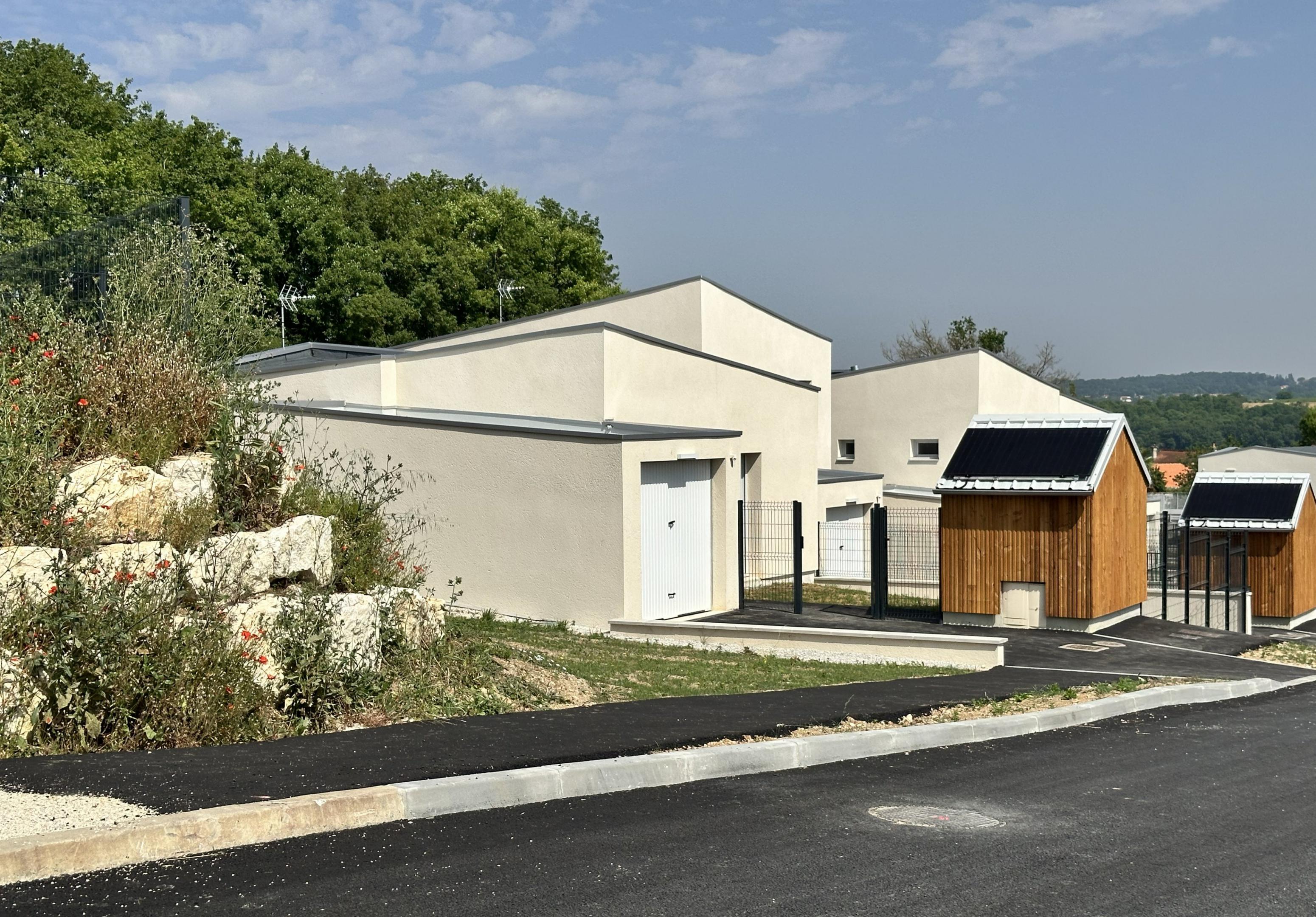 Les maisons sont implantées et orientées de façon à offrir aux habitants quatre expositions. Afin de prendre en compte les caractéristiques topographiques du site, tous les logements sont disposés de manière que les garages, semi-enterrés, présentent le volume le plus bas des constructions à l’approche, et que cette vision en surplomb s’ouvre principalement sur les toitures.