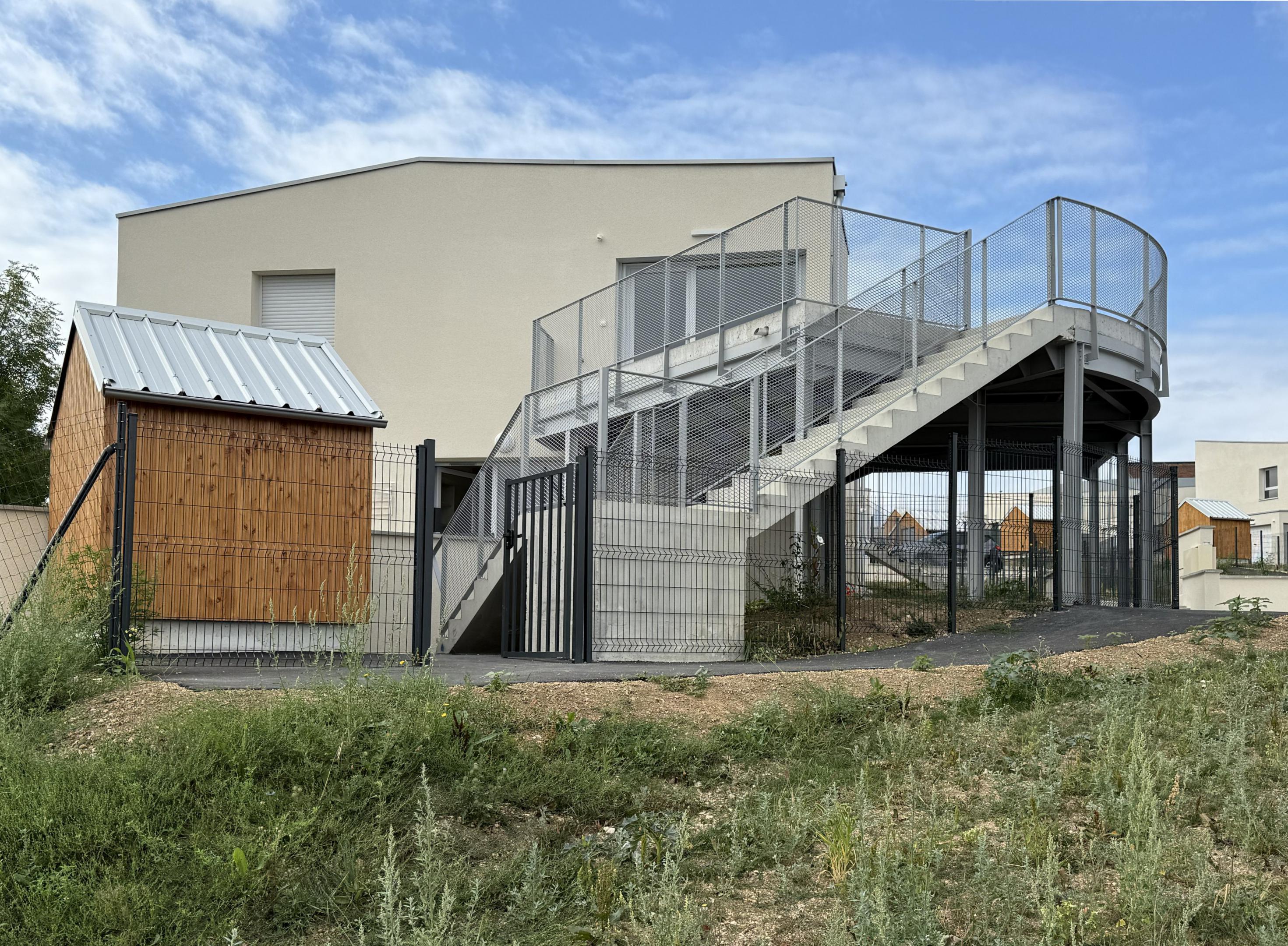 - Tous les logements ont un accès indépendant, il n’y a pas de parties communes : les RDC ont un accès direct au sol depuis l’extérieur, les R+1 sont accessibles par un escalier privatif, situé dans le jardin privatif, et qui mène soit directement à la porte d’entrée pour les logements dont la terrasse est centrale, soit sur une terrasse généreuse en avant de la construction, pour les autres. Ces terrasses sont bâties sur pilotis.